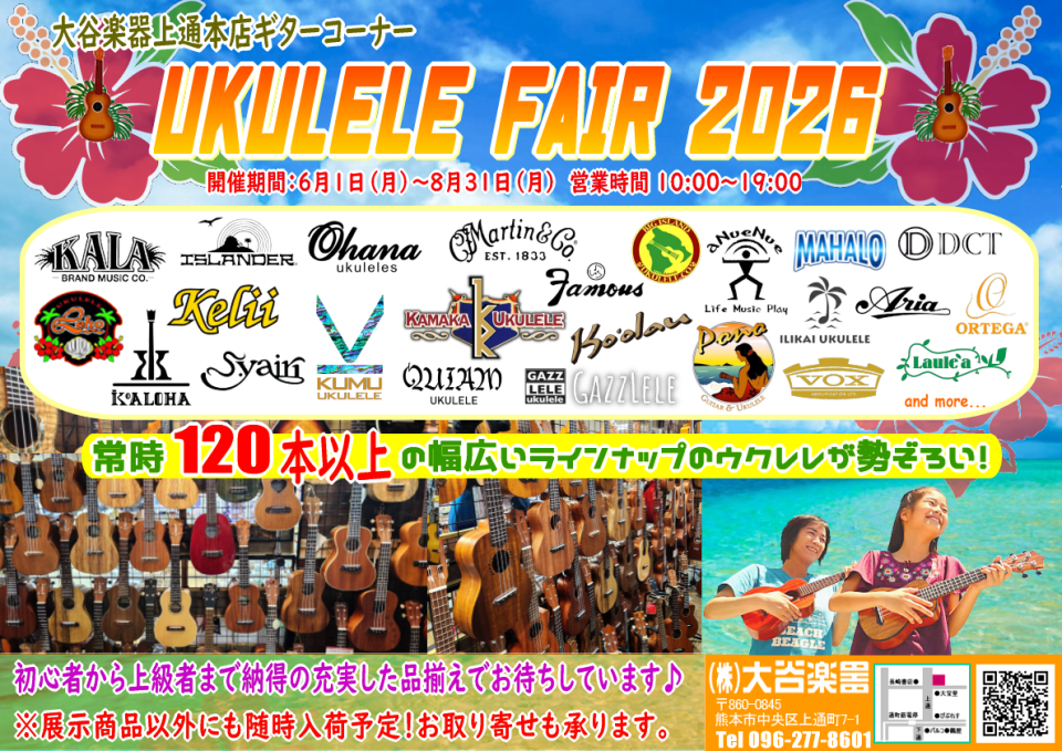大谷楽器上通本店ギターコーナーにて、🏝ウクレレフェア🏝を開催します❗
