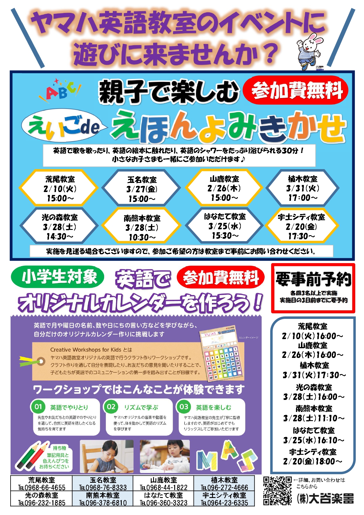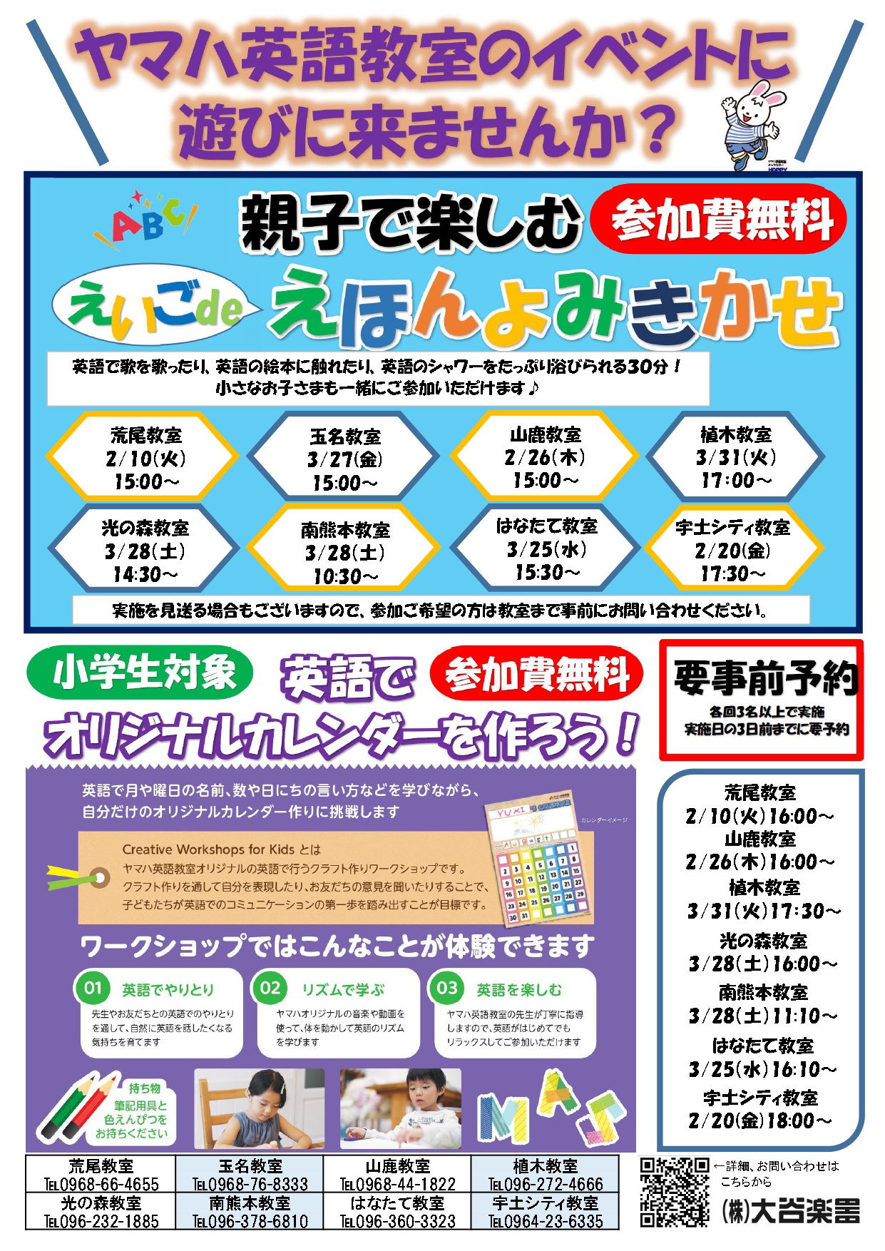 ヤマハ英語教室ではこの春、これから英語をやってみたいなとお考えのお子様と保護者様向けに、2つのイベントをご用意しました🎵