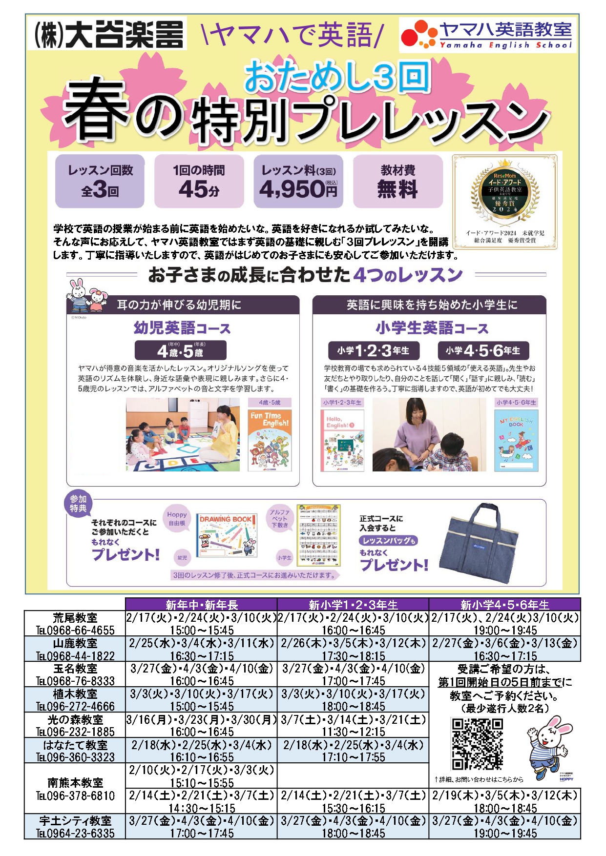 来年春から始まる英語クラス開講前に、ヤマハ英語教室をご体験いただける【春の特別プレレッスン】をご用意しました🎵