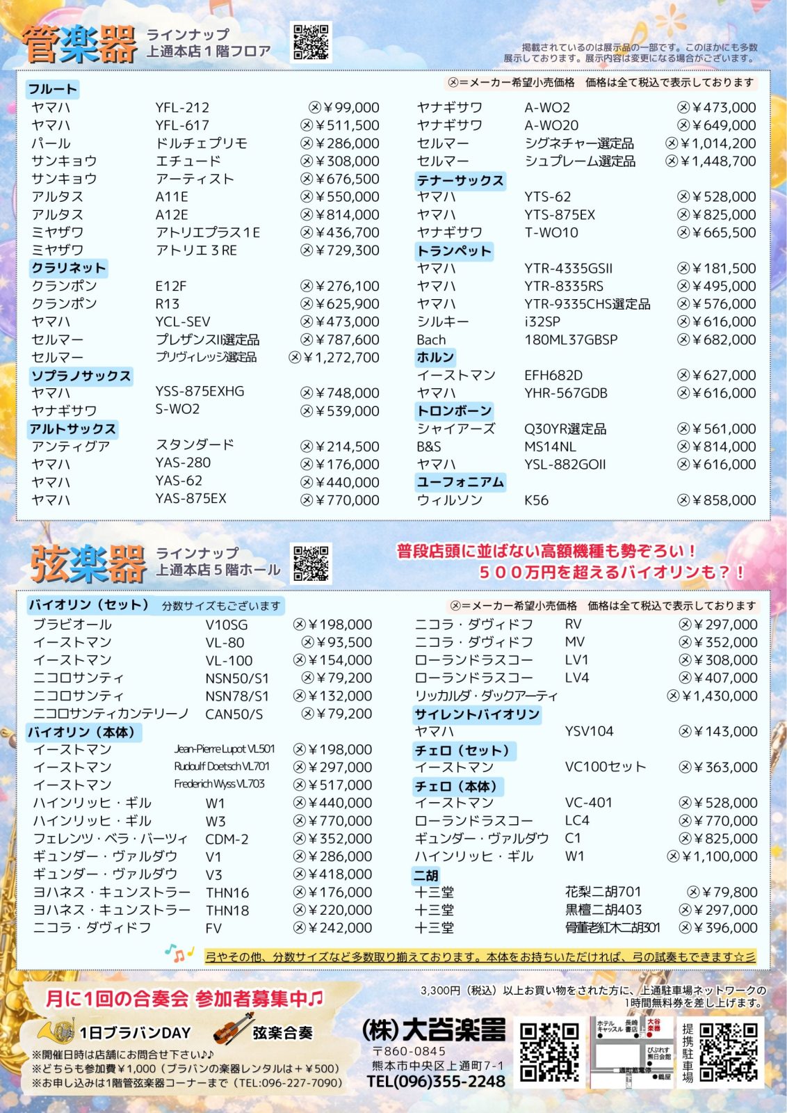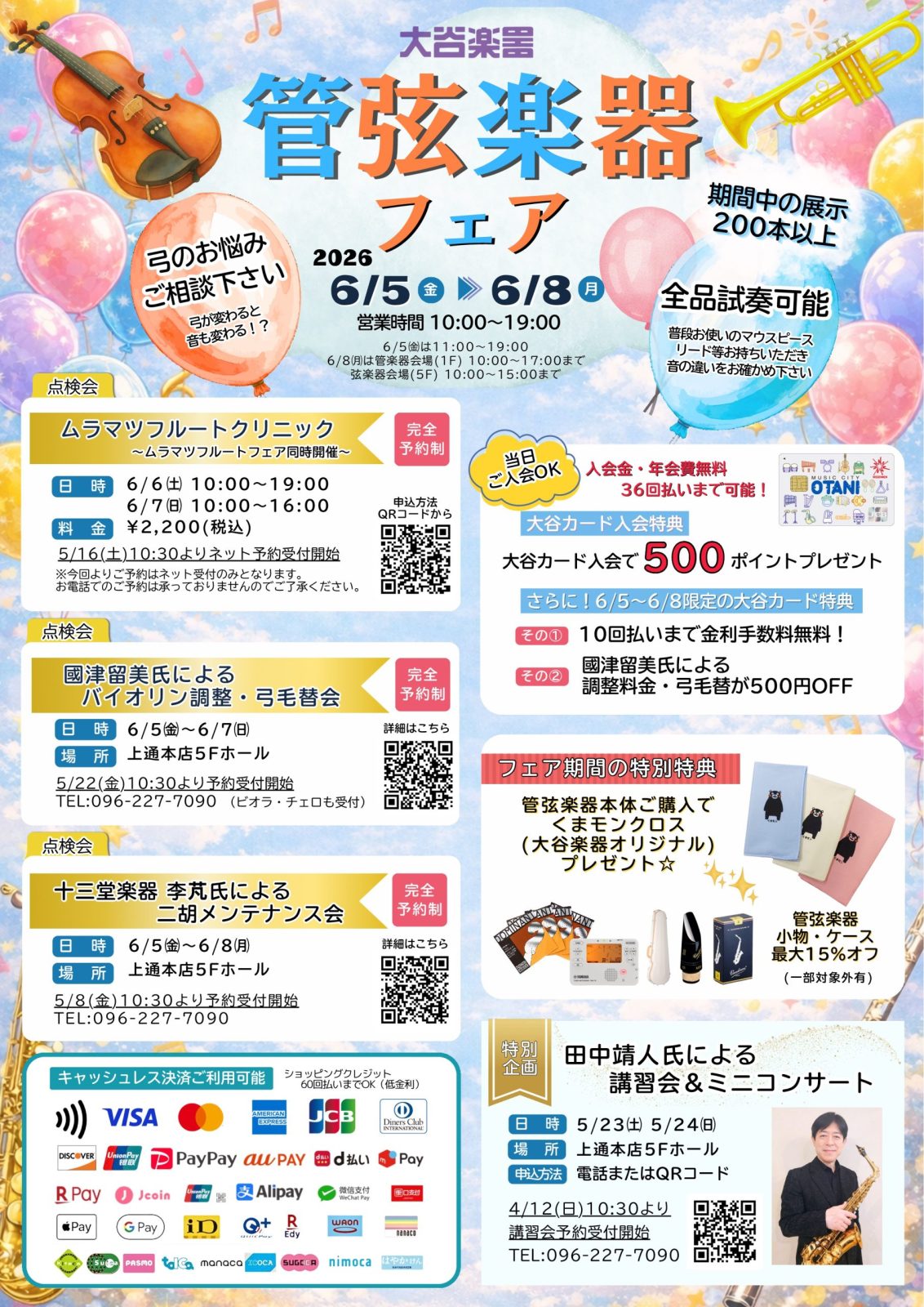 フェア期間限定の管楽器本体ご購入特典として、大谷楽器オリジナルのくまモンクロス をプレゼント!