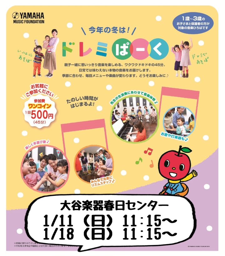 お子様と一緒に音楽の遊び場へどうぞ~😊