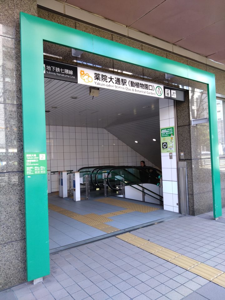 地下鉄七隈線をご利用の場合は薬院大通駅(写真は2番出口です)