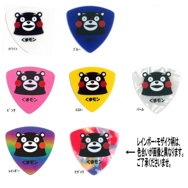 エレキギターやアコースティックギター、エレキベース等にご使用いただけるくまモンのピックです。