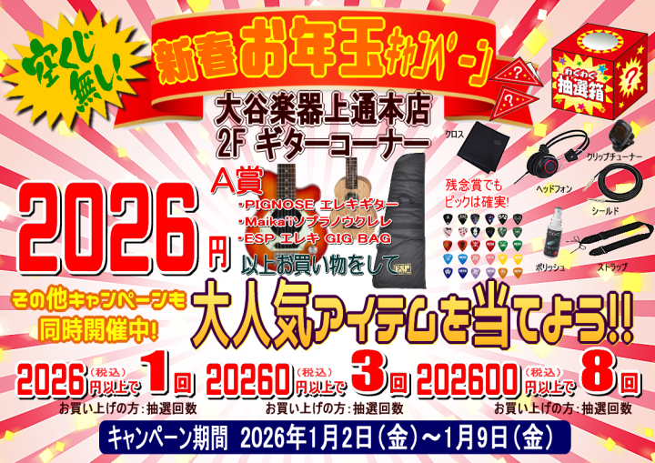 限定グッズが入ったラッキーバッグをプレゼントするキャンペーンも同時開催中!🎶🎸🎶