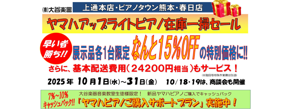 尚、大谷楽器上通本店、福岡春日店の展示品も対象となりますので、この機会に是非ご検討くださいませ。