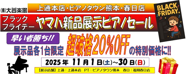 ブラックフライデーに合わせて、大谷楽器も最大級の条件で展示ピアノのセールを行っております。