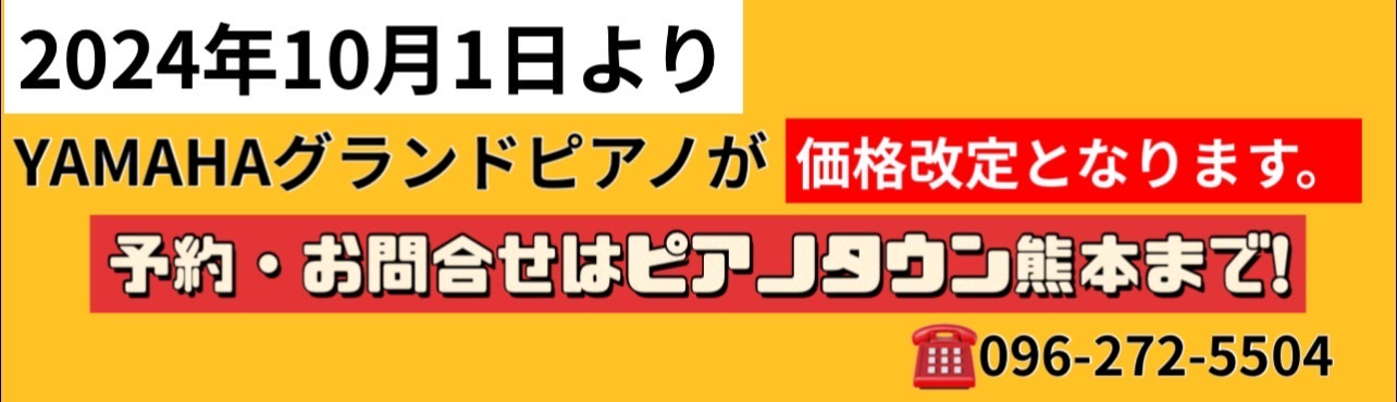 いよいよ来月10月1日より「ヤマハグランドピアノ」が値上げの価格改定です。