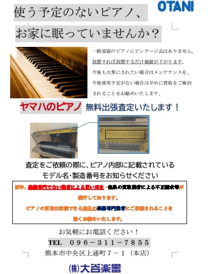 お持ちのピアノのメーカー・機種・製造番号をお知らせいただけますと、