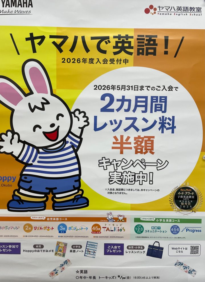 5月開講のヤマハの音楽のレッスン、英語のレッスンはまだまだ体験レッスン受付中です。