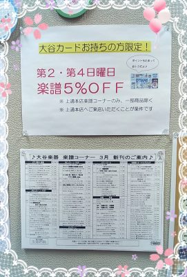 大谷楽器上通本店の楽譜コーナーには様々なジャンル楽譜その他が