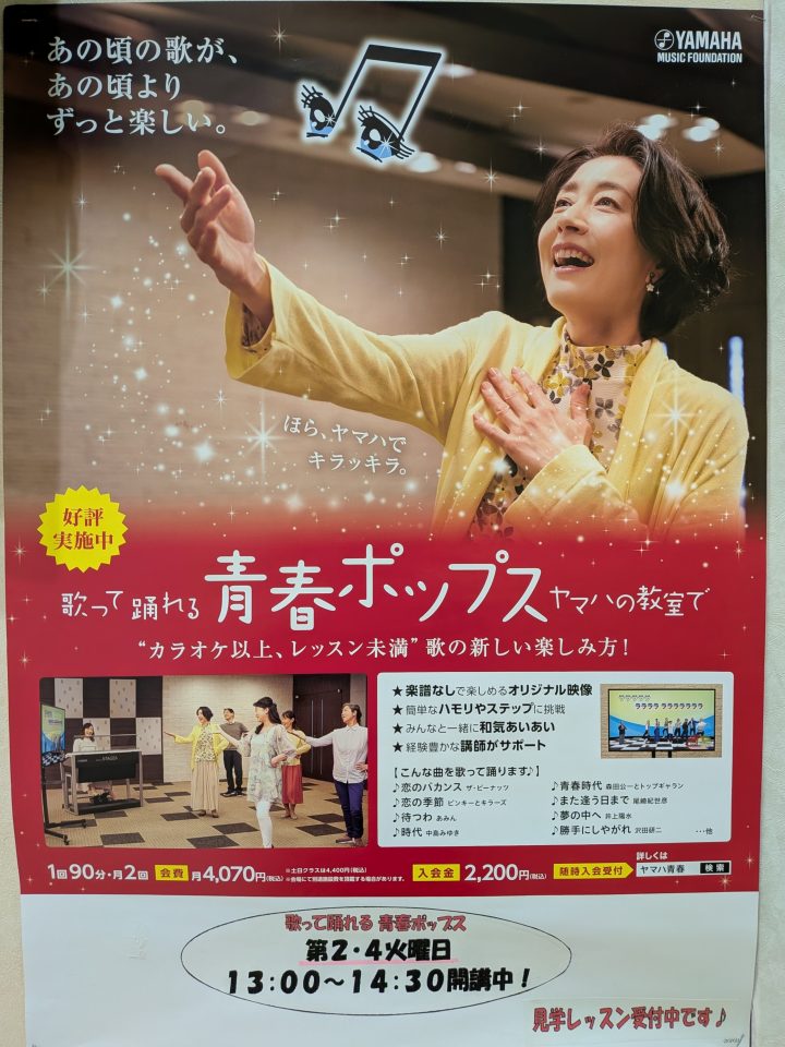 宇土シティ教室で第2・4火曜13時から行われています歌って踊れる「青春ポップス」では