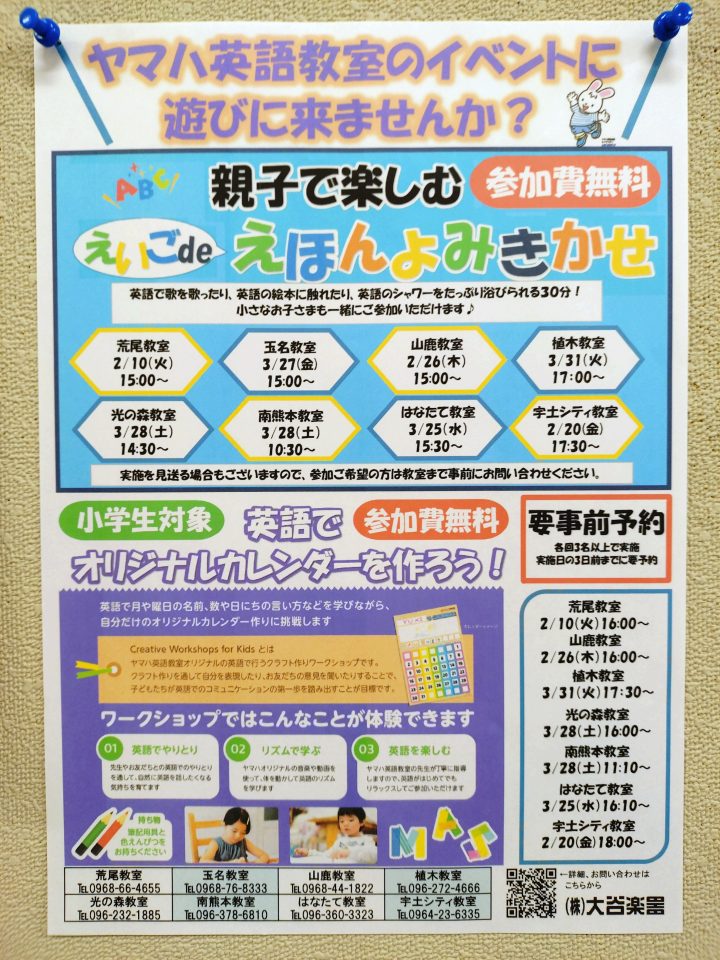 2月に、ヤマハ英語のイベントを行います。