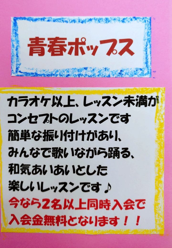6月から、新たに木曜13:30~青春ポップス開講します🎵