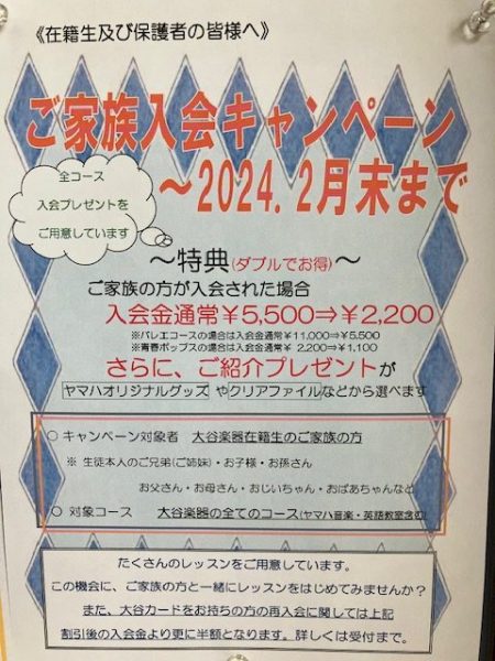 大谷楽器では、ご家族入会キャンペーンを実施中🎵