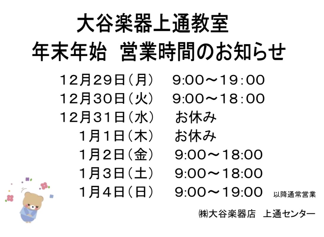 12月29日(月)~1月4日(日)までの期間、営業時間に変更がございます。