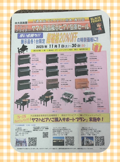 BLACK RIDAYヤマハ新品展示ピアノ在庫セールのお知らせです🎹