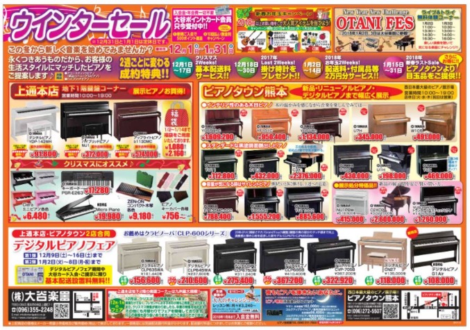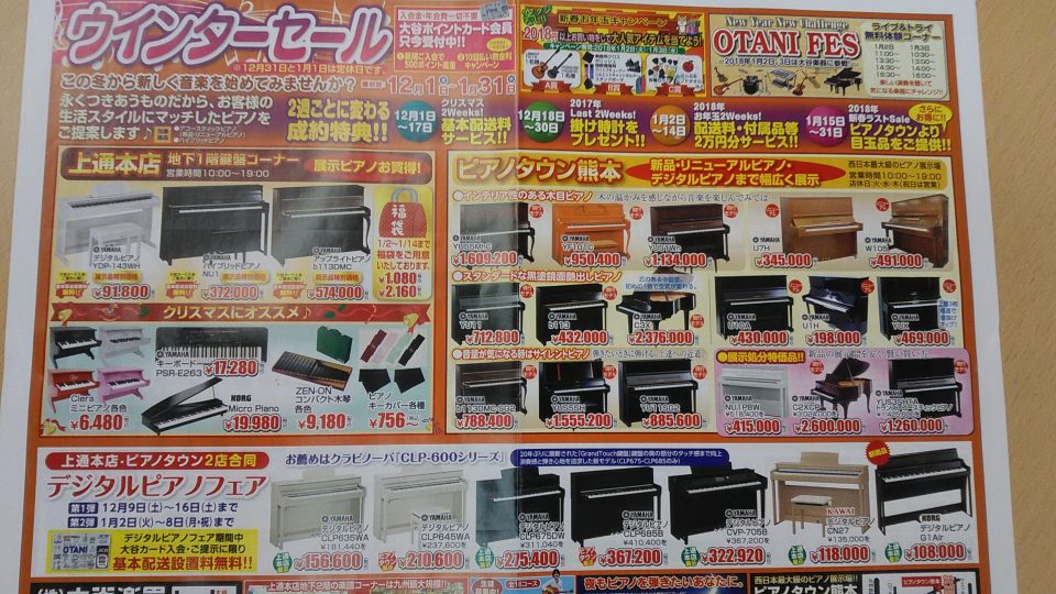 上通本店、ピアノタウン熊本では只今ウインターセール開催中です🎵