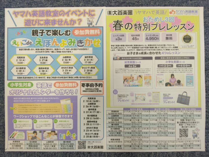 いよいよヤマハ音楽教室・英語教室の無料体験レッスンが始まります❗