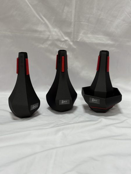 本人自身が演奏する上で市販のミュートでは納得がいかず、自身の演奏経験から研究を重ね、強化カーボンファイバーの高級ポリ乳酸(PLA)を使用したミュートを完成させました。